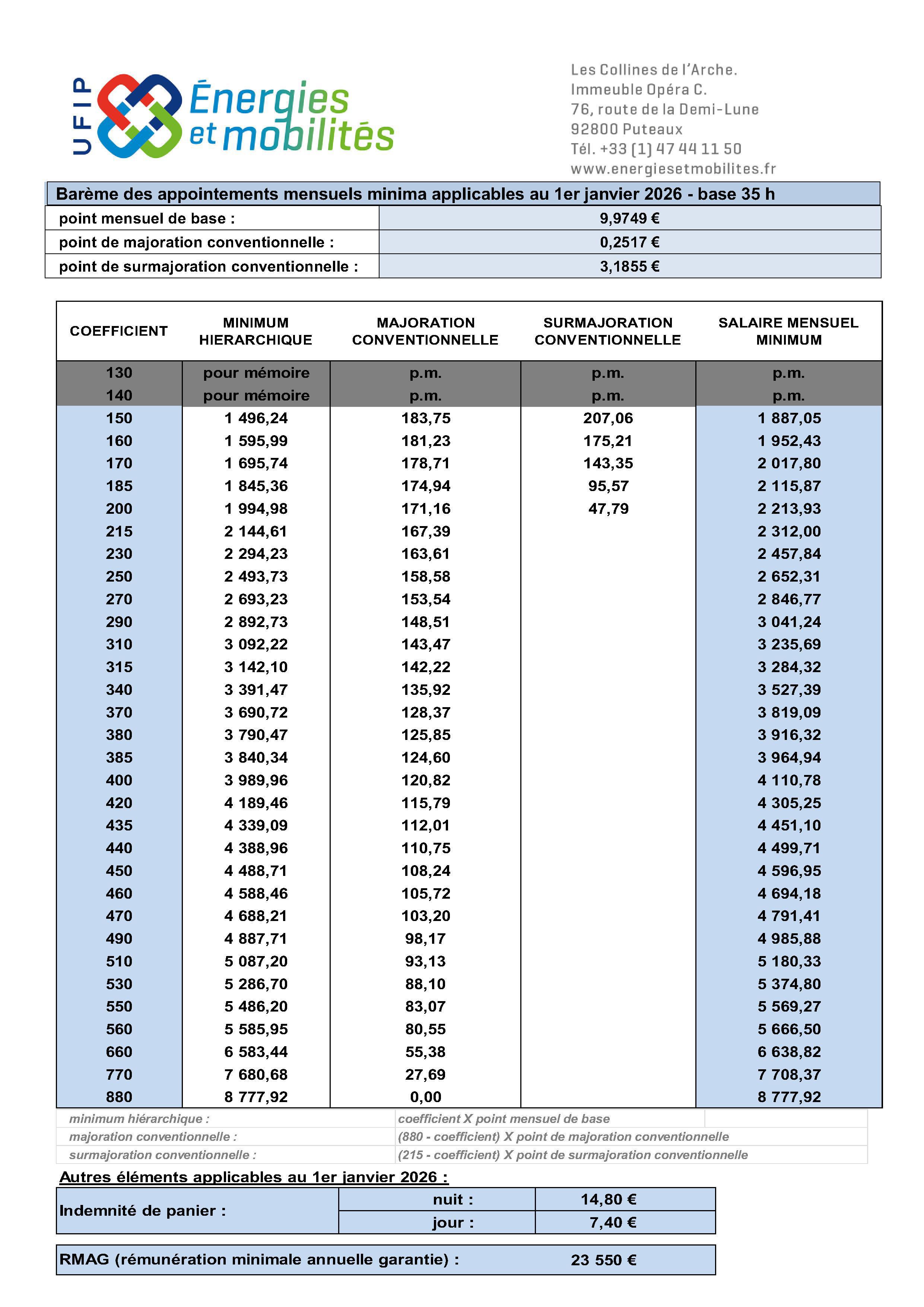 UFIP - Barème 2026